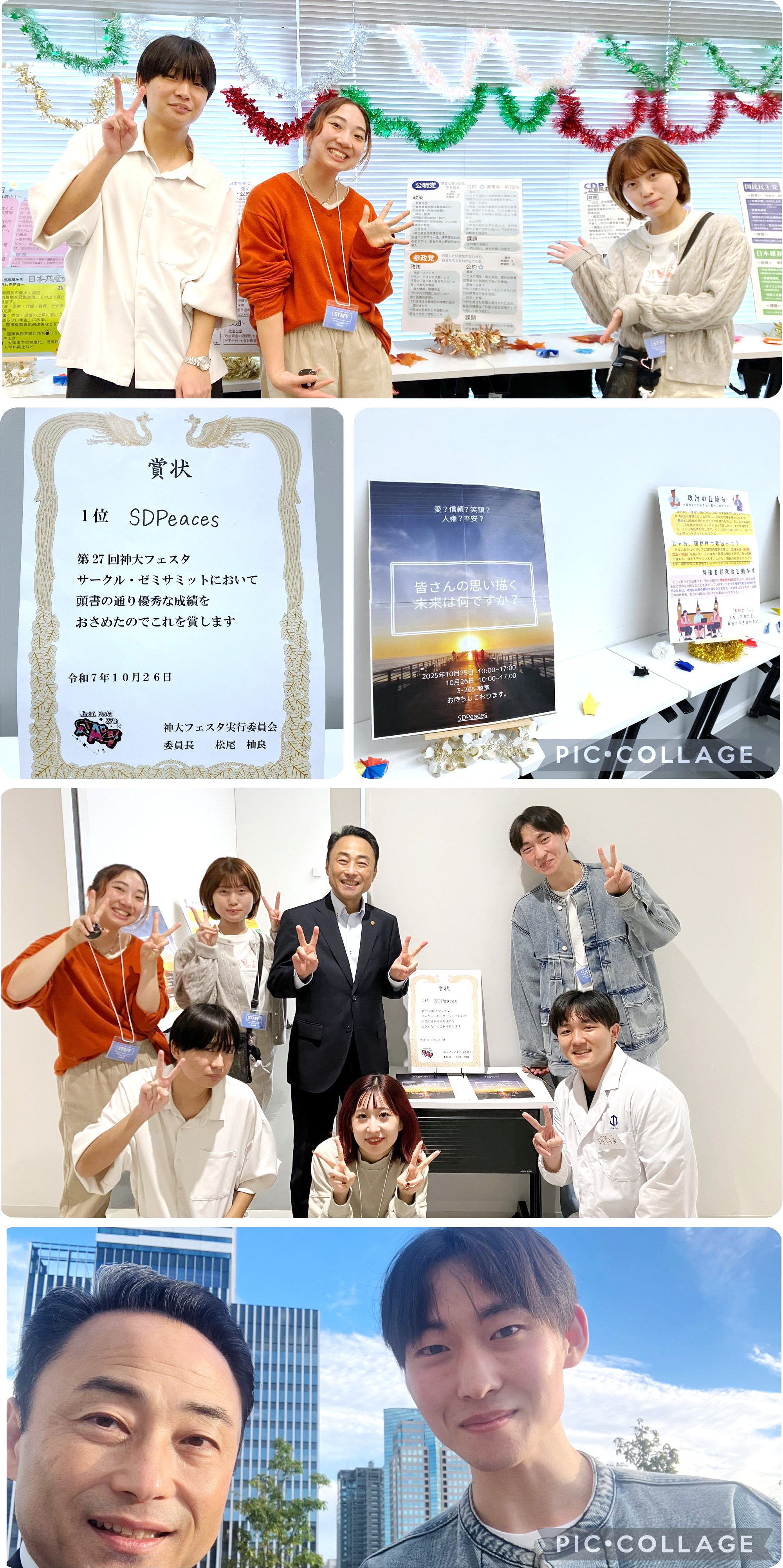 【平和実現への架け橋に!SDPeacesの皆さまと】 神奈川大学 みなとみらい祭にて 「政治」についての展示を拝見しました。 メンバーの熊谷岳拓さんは、2003年8月生まれ。 なんと私が市議初当選の年。 ご両親には日頃からお世話になっており、岳拓さんの成長を折に触れて見てきました。 来年は新社会人。とても嬉しく思います! | |