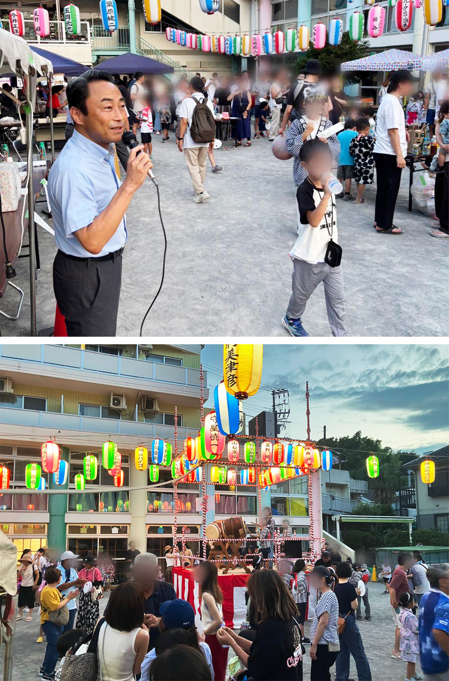 【各地の夏祭りを訪問】 この週末も各地の夏祭りを訪問しています。 膝を突き合わせての本音トーク! 今日は雨の降るなか、こども神輿も盛大に。 準備・運営・後片付け等、皆さま本当にありがとうございます! |
