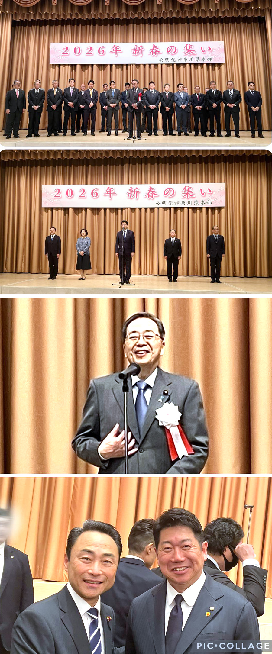【公明党・神奈川県本部の「新春の集い」を開催しました】 ご多忙の中ご参加くださった皆様に、心より感謝申し上げます。 斉藤代表を先頭に、力強いスタートを切ることができました。 川崎市長の福田紀彦さんは、新進党時代に共に汗を流した秘書仲間でもあります。 久しぶりの再会に、当時の思い出がよみがえりました。 | |
