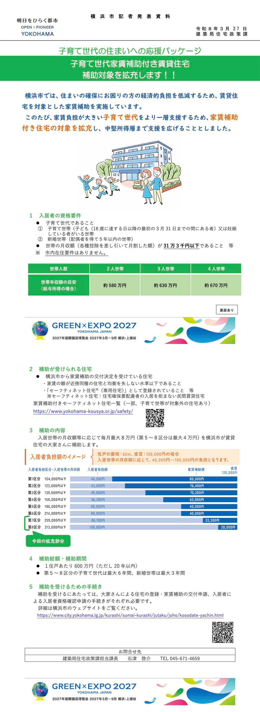 【子育て世代の住まい支援がさらに拡充されます】 横浜市は、家賃負担が大きい子育て世代を応援するため、家賃補助付き賃貸住宅の補助対象が拡充されます。 今回の拡充は、 ・子育て世帯・新婚世帯の対象を中堅所得層まで拡大 ・家賃補助は。最大月額8万円(区分により最大4万円) この取り組みは、公明党横浜市会議員団としても推進し、先日の本会議の質疑で取り上げました。 住宅価格や家賃の上昇が続く中、横浜で安心して子育てを続けられる環境づくりが前進します。 これからも、子育て世代の暮らしをしっかり支える施策を進めてまいります。 詳しくはこちら。 | |