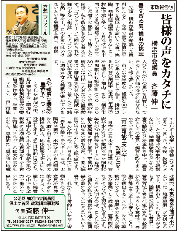 この暑さの原因は─?皆さんと同様、私も街を歩きながら考えます。「コンクリートで固められた緑の少ない街並」「エアコンの排気熱」等々…。このままではいけないという危機感と共に、市民一人ひとりがこの思いを共有し、できることから始めなければならない、と強く感じました。