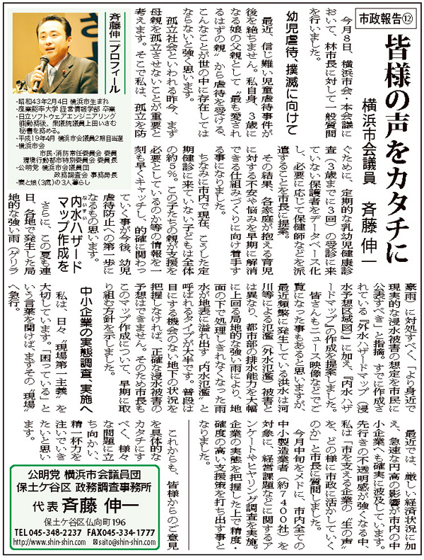 | 最近、信じ難い児童虐待事件が後を絶ちません。私自身、3歳になる娘の父親として〝最も愛されるはずの親〟から虐待を受ける、こんなことが世の中に存在してはならないと強く思います。