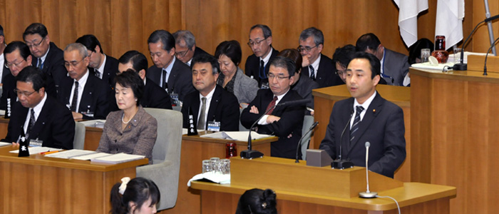 私自身、昼夜の別なく家族ぐるみで祖父を介護する家庭に育ち、介護の大変さも、大切さも、そして介護の"尊さ"も、身をもって感じてきました。 介護に携わる家族は、24時間、365日、いっときとして休むことなく、全精力をつぎこんでいます。私は、介護者の負担軽減を含め、年老いても住み慣れた地域で安心して暮らすことを支援するシステムが必要だと考えております。 24年度から、要介護者の方や認知症高齢者の在宅生活を24時間支えるサービスとして、「定期巡回・随時対応型訪問介護看護サービス」が創設され、先月現場を視察させていただきました。本市では各区1か所、合計18か所が整備され、このサービスを利用する方も着実に増えていると聞いております。 |